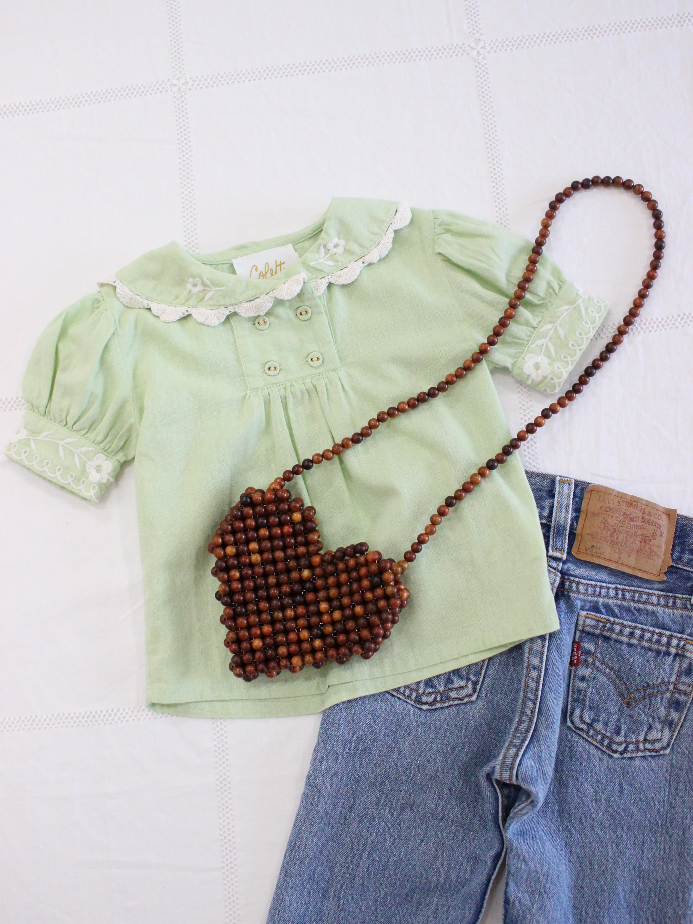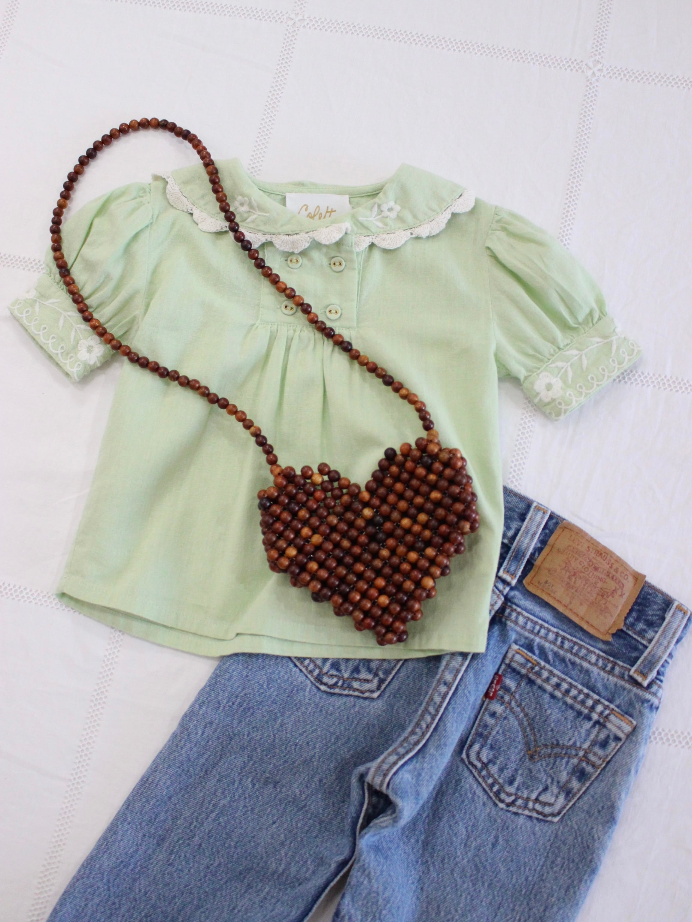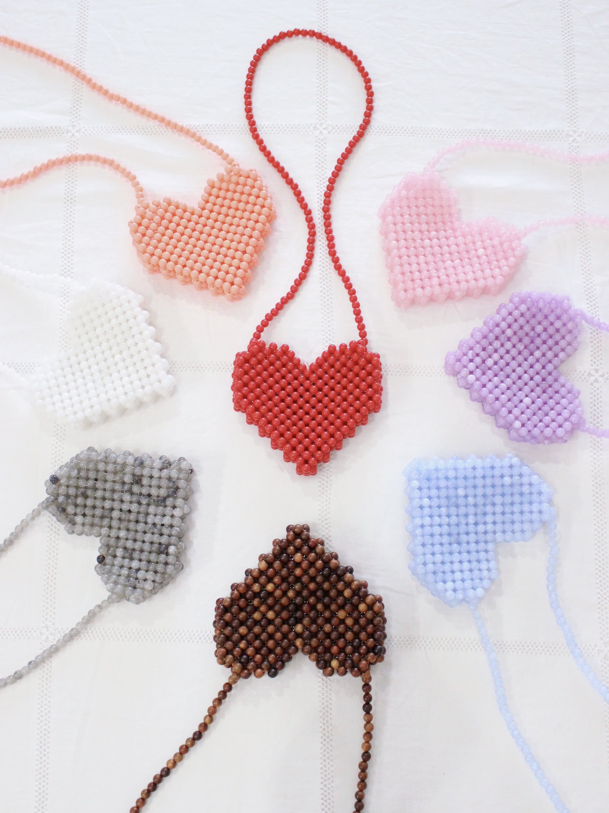 1点1点丁寧に作られたハートのビーズポシェット。