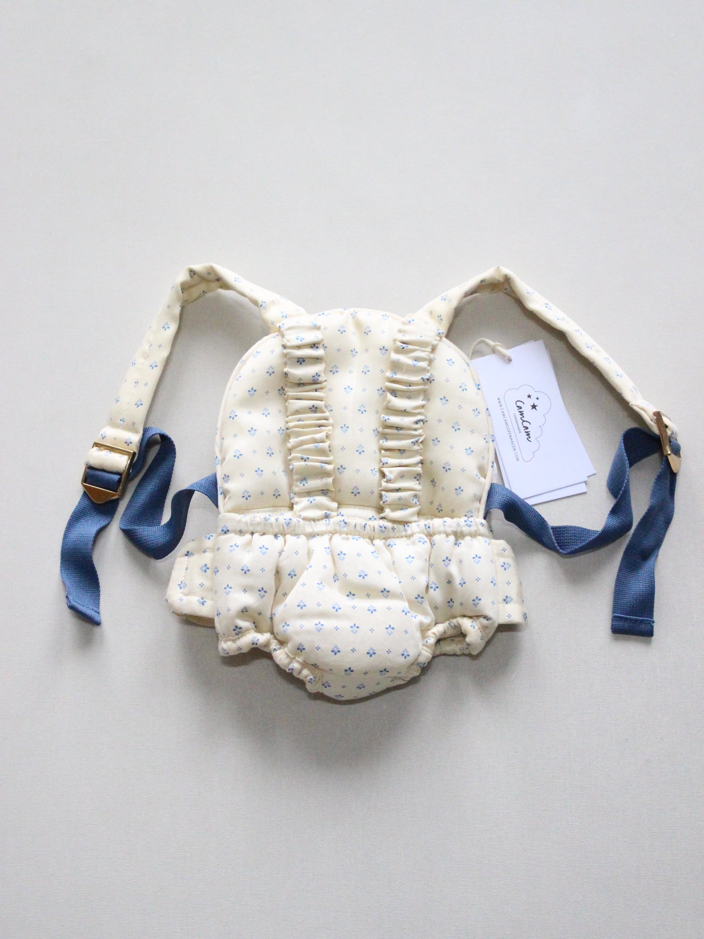 調節可能なショルダーストラップと、腹部のマジックテープでサイズを調整できます。前向き・背中向きの両方で使用可能で、市販のほとんどの人形に対応しています。