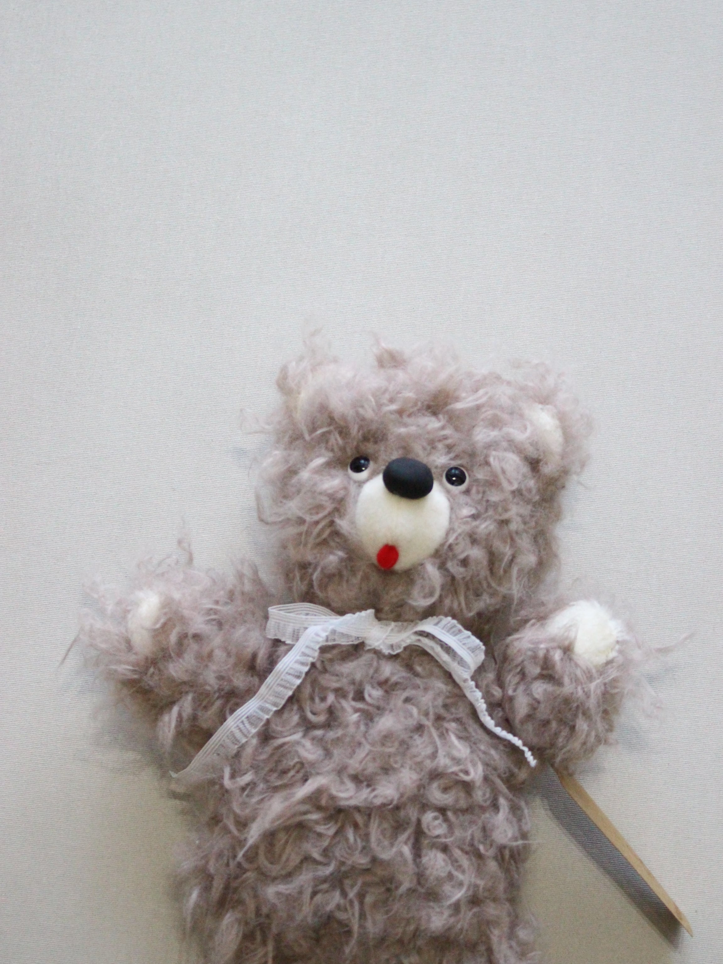ガラス(目)、粘土(鼻)、ポリエステルフェルト(舌)